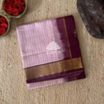 Kanchi korvai silk cotton in lavender color having zari kattam all over the saree and rettai pettu korvai border. Pallu and blouse in deep mahogany maroon color.
