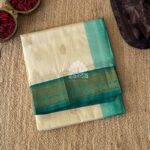 RM420.00RM355.00or 3 payments of RM118.33 withExclusive kanchi korvai silk cotton in light creamy shaded with fine thread kattam design all over the saree and parrot in zari kattam designed korvai lower border and khadi zari design at top korvai border. Pallu and blouse in wine purple color.
