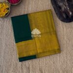 RM415.00or 3 payments of RM138.33 withExclusive kanchi korvai silk cotton in dark green color having zari kattam with bhuttas design all over the saree and rich floral with annapakshi with thazhampoo designed korvai lower border and floral designed korvai top border. Pallu and blouse in orange color.