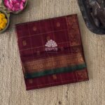 RM415.00or 3 payments of RM138.33 withExclusive kanchi korvai silk cotton in dark green color having zari kattam with bhuttas design all over the saree and rich floral with annapakshi with thazhampoo designed korvai lower border and floral designed korvai top border. Pallu and blouse in orange color.