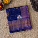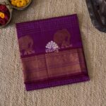 Kanchi silk cotton in violet-purple color having zari with bhuttas all over the saree and zari design border. Pallu and blouse in deep turquoise color.