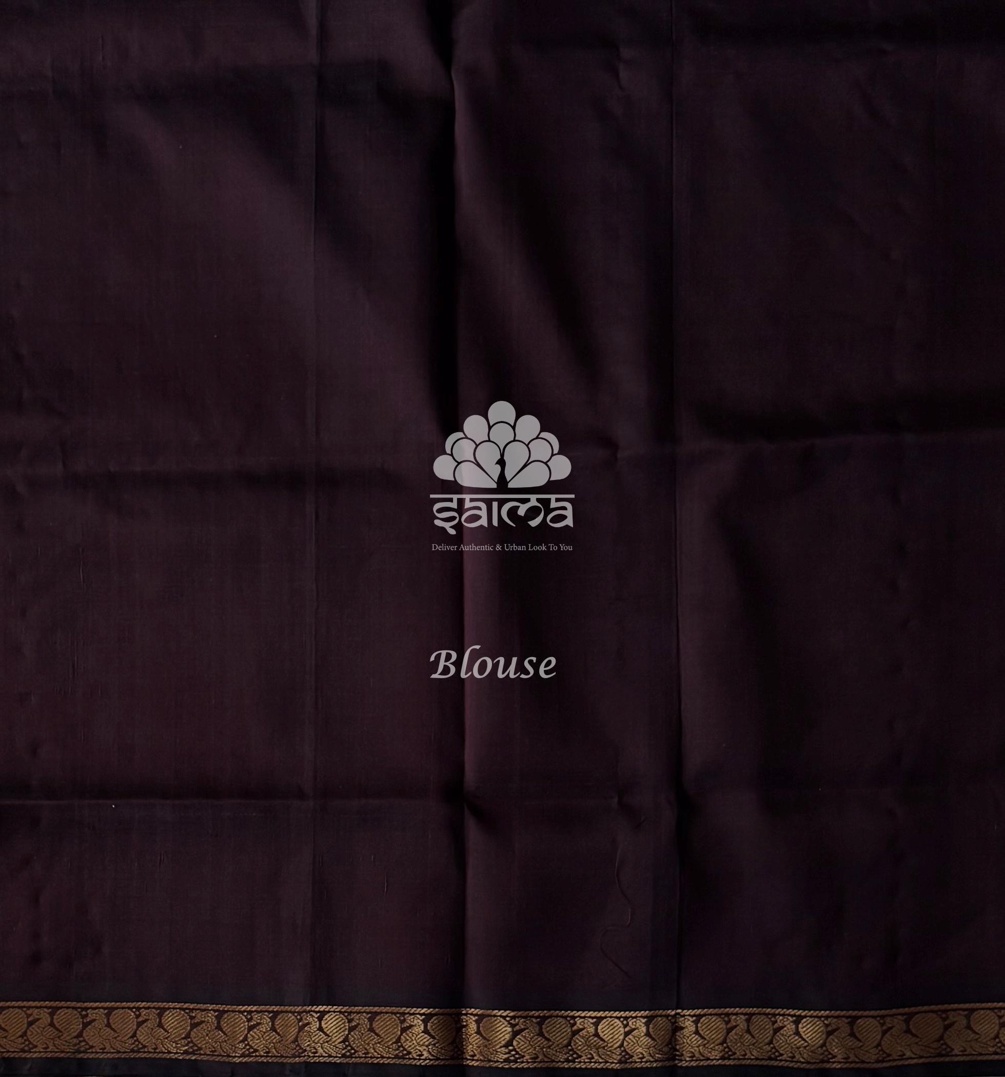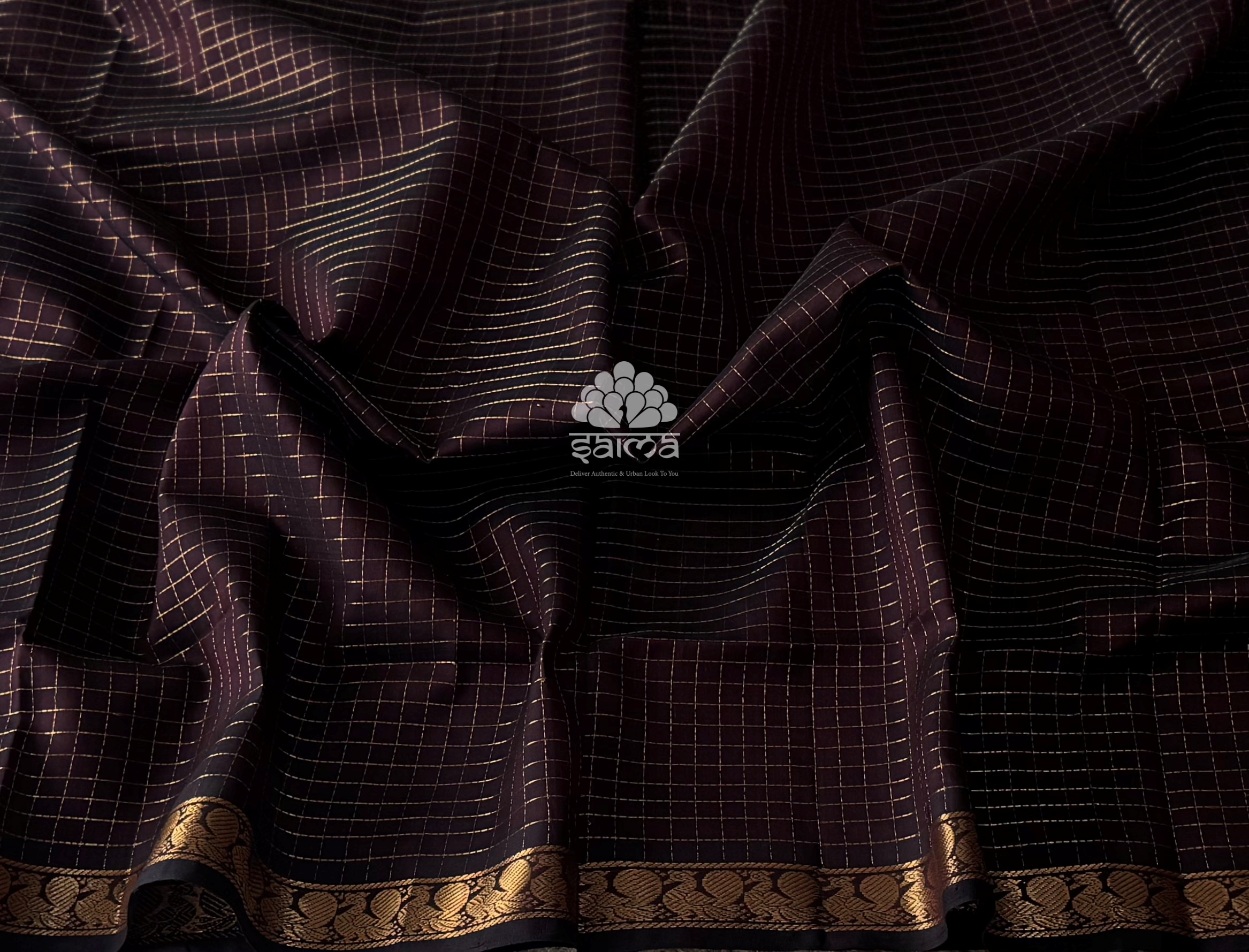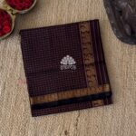 Kanchi silk cotton in deep brown having zari kattam design all over the saree and annapakshi design border. Pallu and blouse in self color.