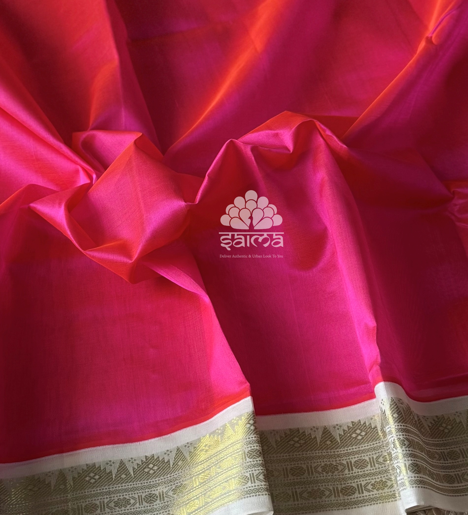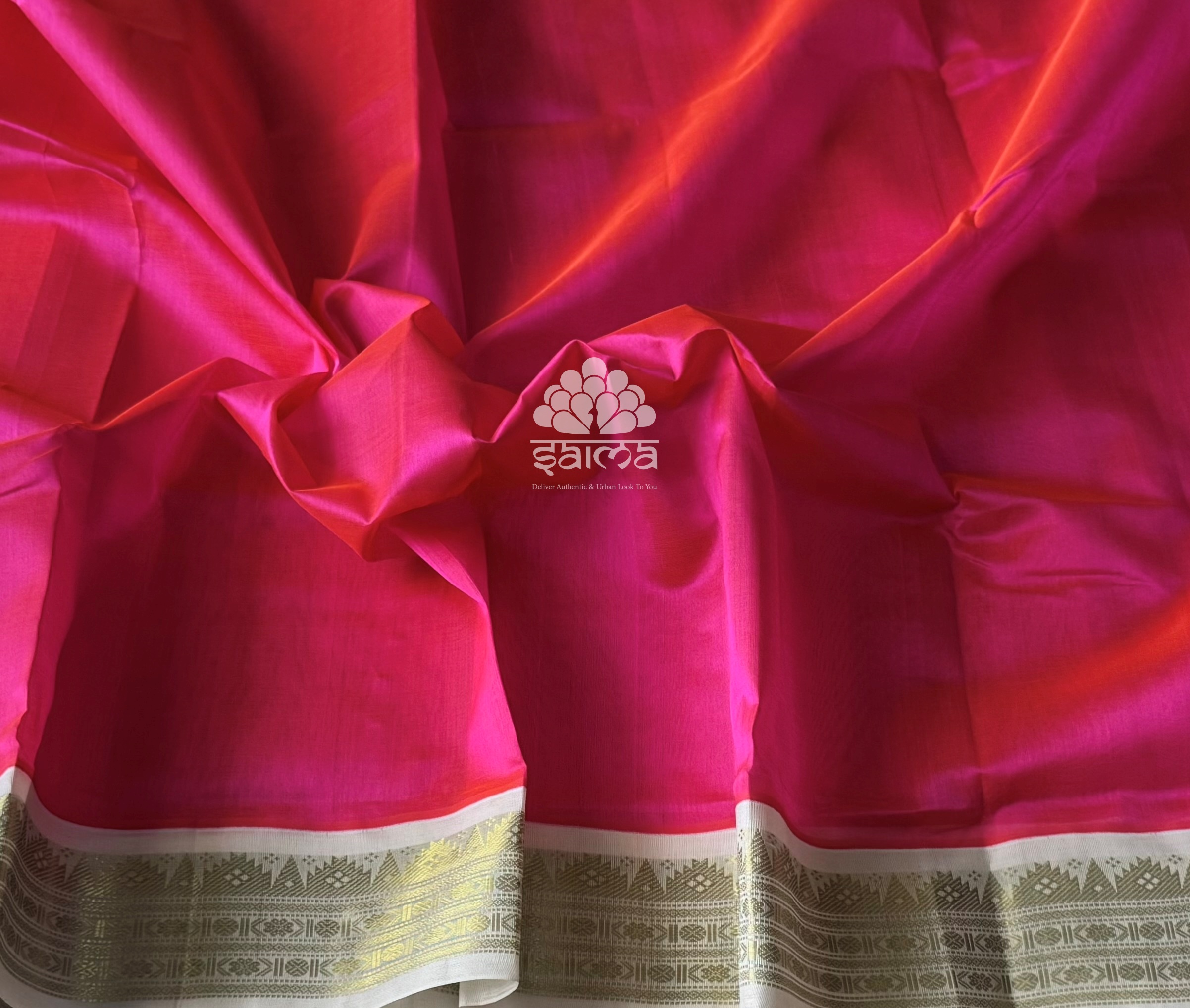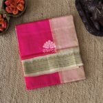 Kanchi silk cotton in hottie pink color having plain design and rich zari polka designed korvai border. Pallu and blouse in off white color.