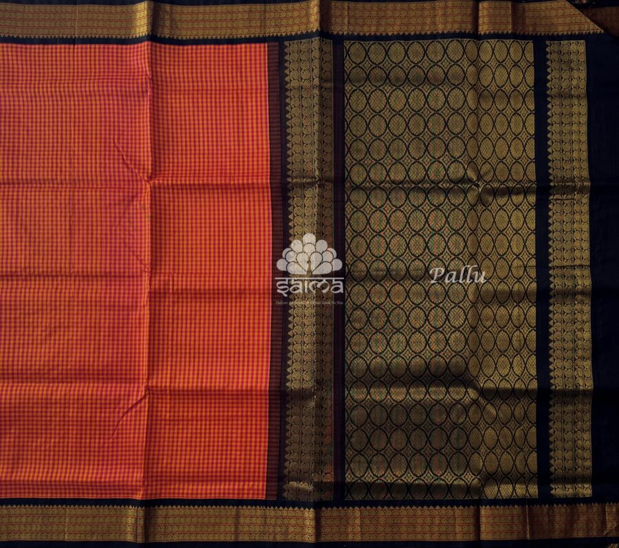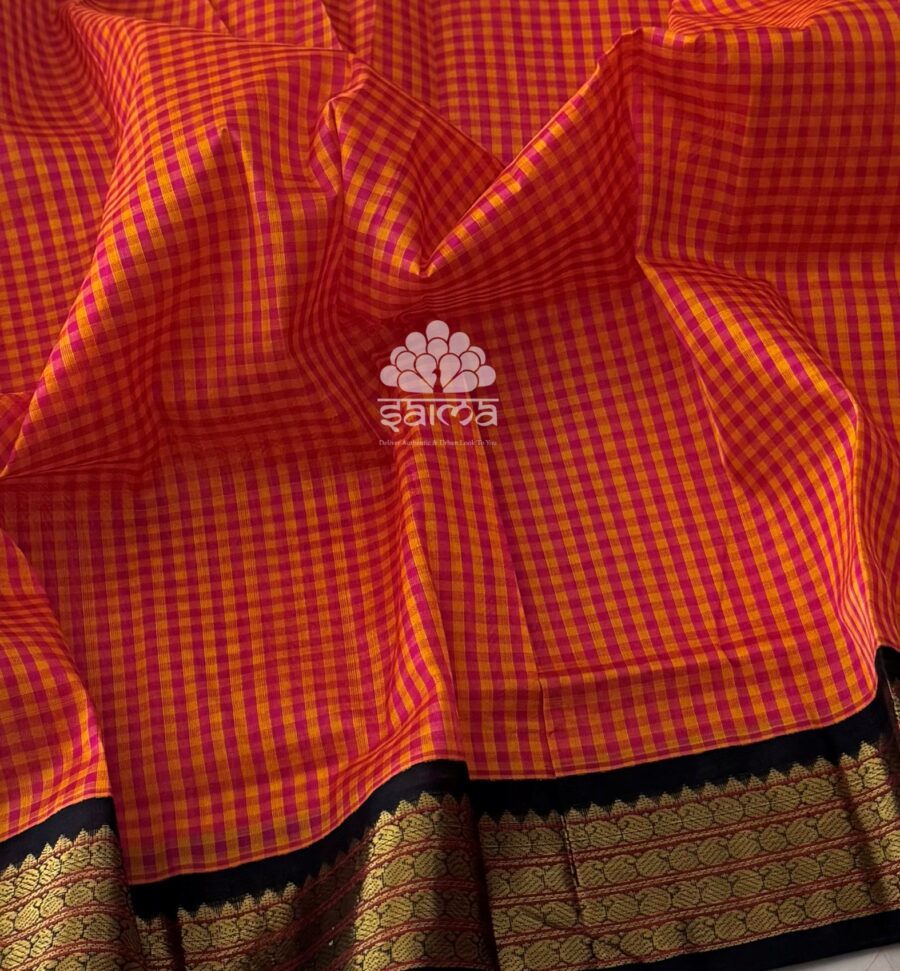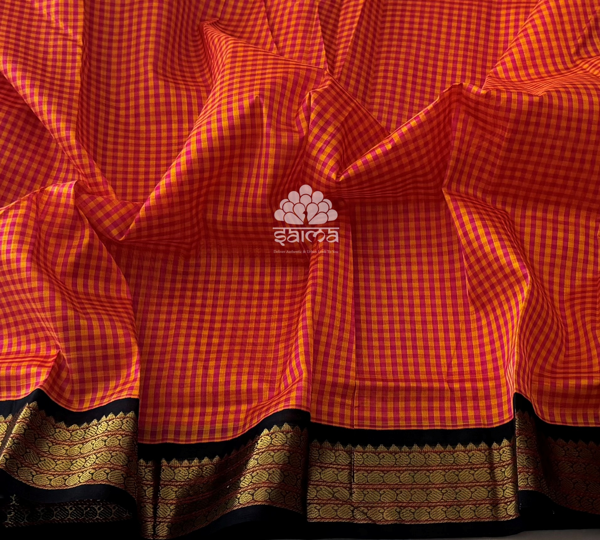 Deepavali Sale : Kanchi korvai silk cotton in yellow and pink combo color having podi kattam and annapakshi designed korvai border. Pallu and blouse in black color.